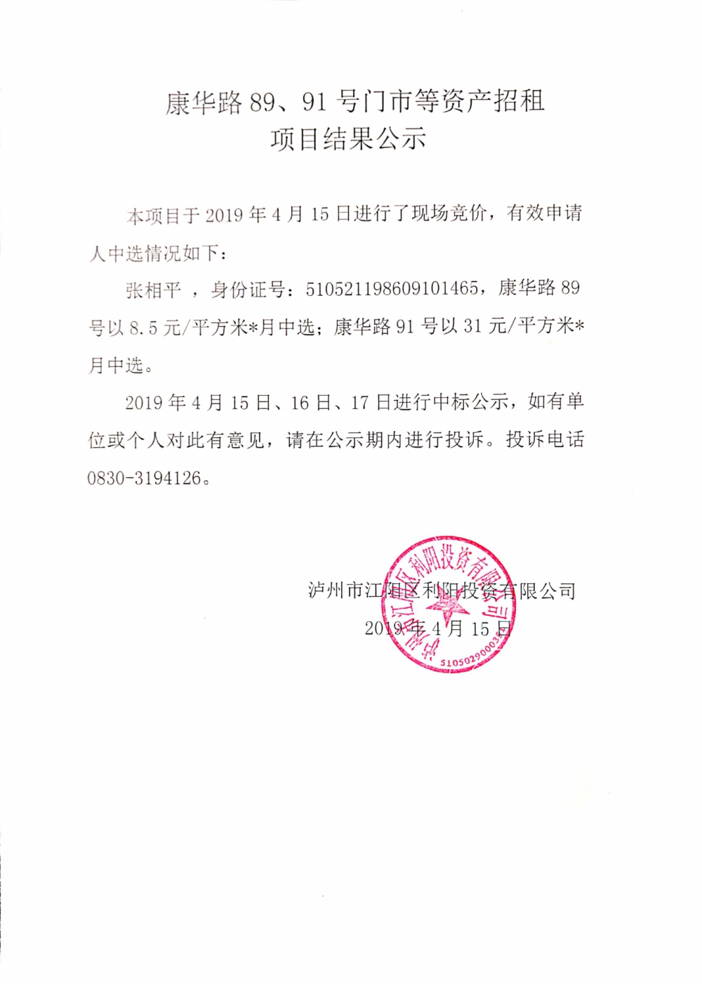 来源:泸州市江阳区利阳投资有限公司 发布时间:2019-04-15