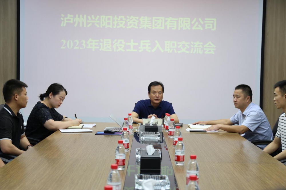 2023年8月31日,兴阳投资集团组织召开退役士兵入职交流会,集团公司党委书记、董事长吴皓出席会议并讲话,集团公司党委副书记、纪委书记余清冰,集团公司人力资源部部长周于又和15名2023年“阳光安置”退役士兵参会。会议由集团公司人力资源部部长周于又主持。