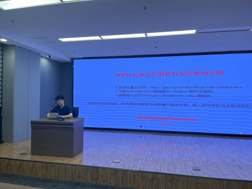 为进一步夯实软件正版化工作成果,推进软件正版化工作走实走细、做深做好,5月12日上午,兴阳投资集团组织召开2023年软件正版化推进会暨培训会,各部室中心相关工作人员参会。