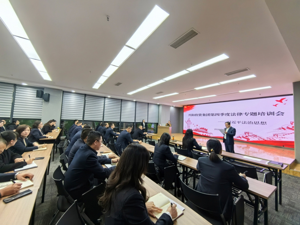 为深入学习贯彻宣传习近平法治思想,教育和引导广大党员和职工尊法、学法、守法、用法,不断提升反腐败工作的规范化、法治化水平,提高员工风险防范意识,扎实推进清廉企业建设,12月12日下午,兴阳投资集团组织开展习近平法治思想专题培训会。