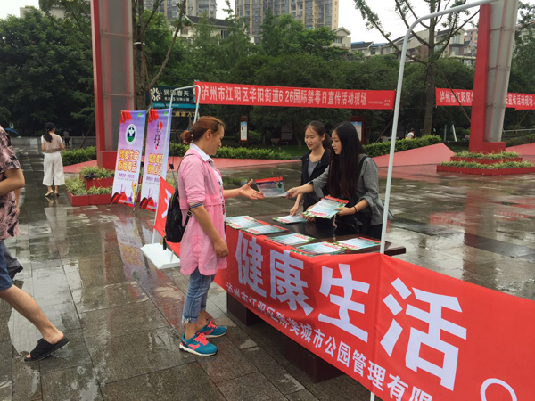 6月26日,兴阳投资集团在江阳公园组织开展主题为“无毒青春,健康生活”禁毒宣传教育活动。工作人员在江阳公园及管辖小区显眼位置悬挂禁毒宣传横幅、张贴禁毒海报,向小区居民及过往群众发放禁毒宣传资料3000余份,接受咨询300余人次。(醉美公司 刘丹)