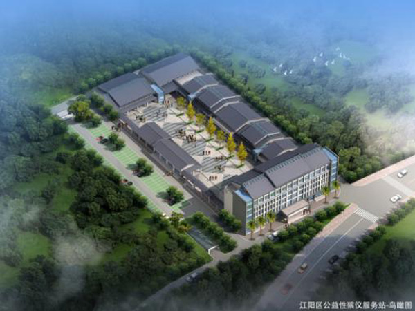 江阳区公益性殡仪服务站位于江阳区华阳街道江湾村(侯沟头),项目于2016年6月动工,计划总投资8000万元,占地25亩,馆区总体采用现代中式建筑风格,总建筑面积13628平方米,项目根据功能分设综合大楼、停车场、广场、悼念区及附属用房区。项目预计7月中旬投用,主要用于群众开展停灵悼念业务,不涉及火化方面业务。