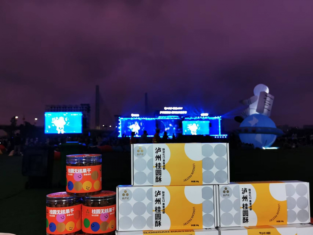 活动中,“泸小圆”全新系列果酒首次公开亮相,凭借清新口感与高颜值包装,在地博会现场迅速吸引消费者目光,打响了新品知名度。随后,品牌精准切入年轻消费场景,在银河左岸音乐节上,“泸小圆”果酒成为年轻人打卡分享的热门单品,成功拉近与年轻群体的距离。而在滨江路车展现场,“江阳有礼”将“品泸记”桂圆酥、桂圆果干与“泸小圆”果酒同台展示,打造“美食+美酒+豪车”的跨界体验,进一步提升了品牌曝光度。